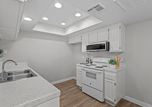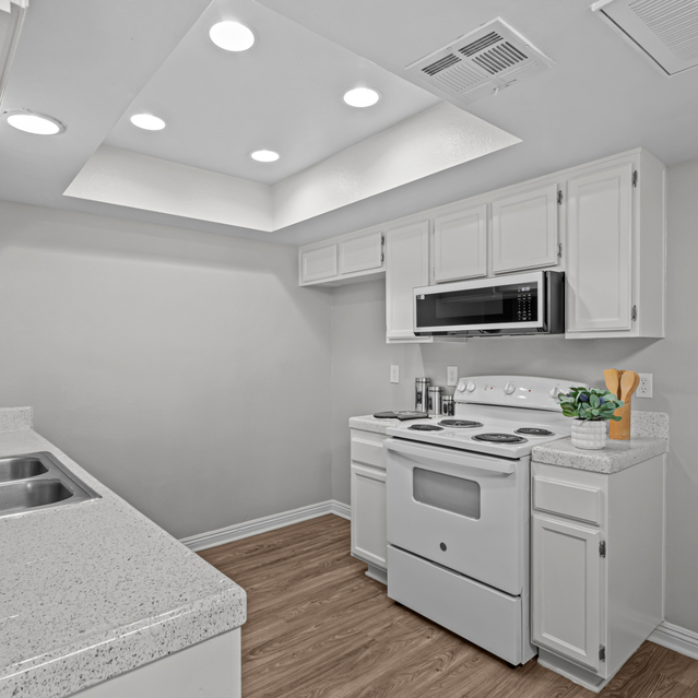 Enjoy living minutes away from Tyler Shopping Mall, fine dining, schools, and easy access to the 91 freeway. La Sierra is less than a mile from Kaiser in Riverside as well. La Sierra is managed by a professional, friendly management team that is dedicated to the needs of our residents. Come by for your own personal tour today. Our 2 bedroom floorplans feature dual primary suites, a fireplace, vaulted ceilings, tile kitchen counters and built-in microwave. Our 1 bedroom floor plan has the closet of your dreams! Large enough for 2 adults with a shoe obsession! The kitchens feature tile kitchen counters, custom accent walls, ceiling fans, dishwasher and a microwave. Let us show you why our residents love it here.