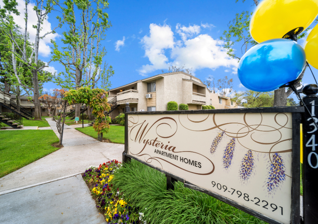 Wysteria Apartments is conveniently located off the 10 freeway, within walking distance of the University of Redlands. This pet friendly community offers washer & dryer hook-ups, ceiling fans in the kitchen area, dishwashers, and a pool & spa to relax in. Water, gas & trash are also paid utilities. These spacious 2 bedroom units are also decorated with an accent wall. Come and see your new home today!